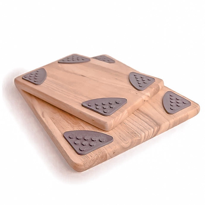 This beechwood chopping board is 11" and the perfect size for your kitchen drawer. The non-slip rubber feet on the bottom hold the cutting board firmly in place so you no longer have to worry about thin boards moving around!