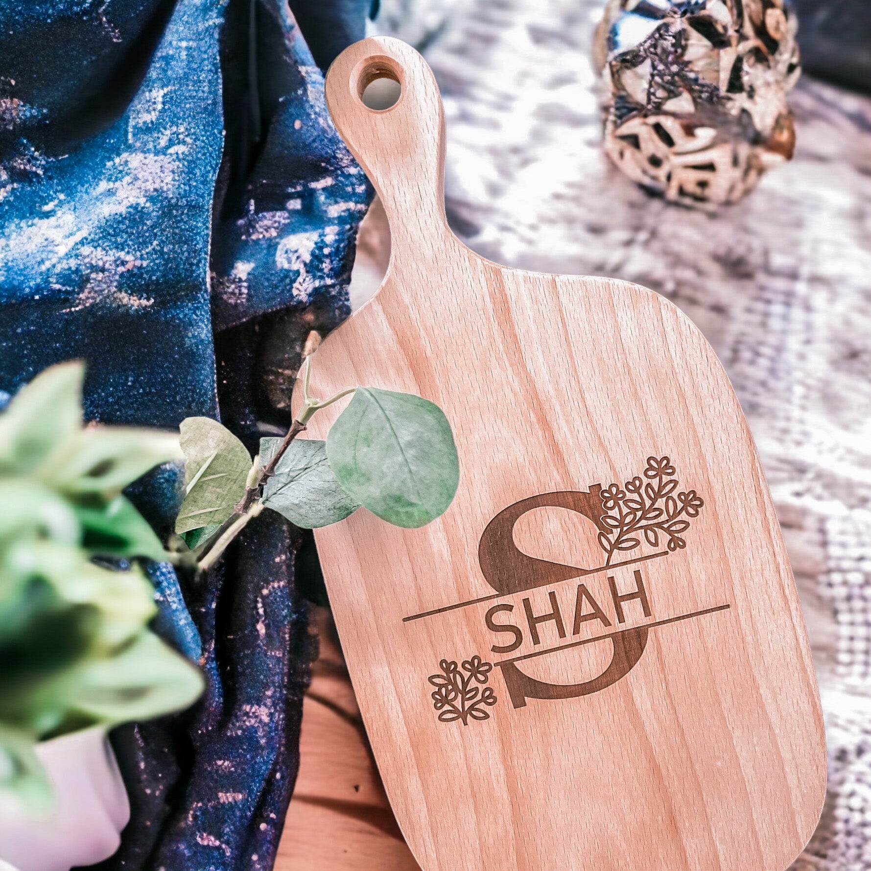 Our boards now come with handles so that they are perfect to use for all ages. Have kids cut their cucumbers, or serve fresh baked bread and cheese on this beautiful, personalized board.